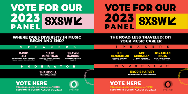Opposition has three exciting SXSW 2023 panel proposals with amazing moderators and an impressive line-up of speakers, and we need your vote!